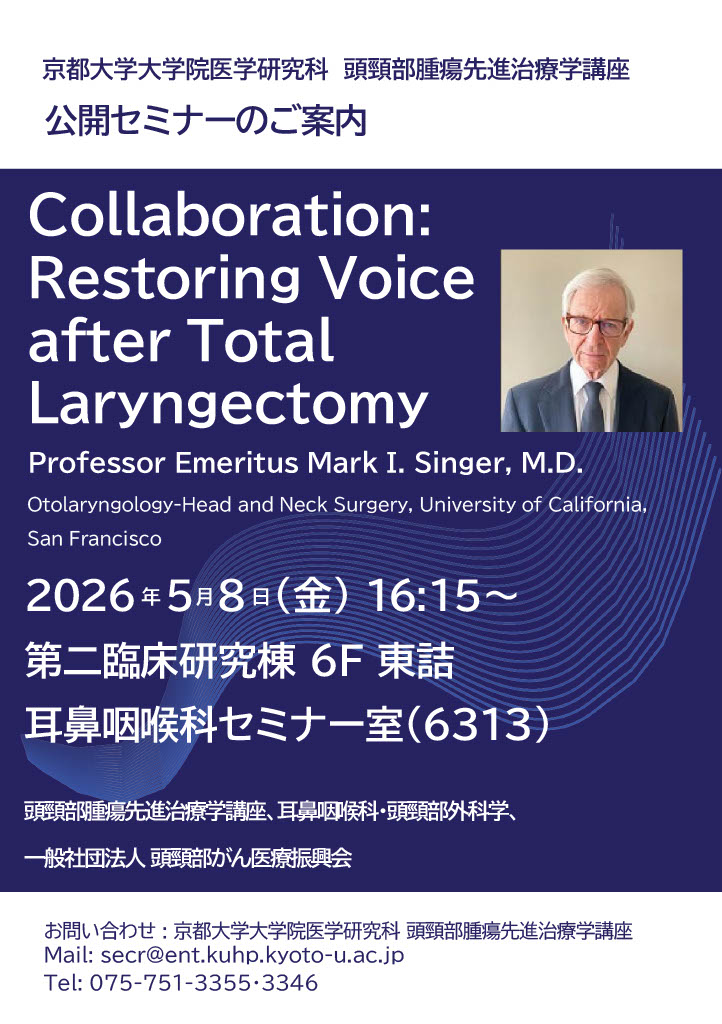 News 医療関係者の方へ 未分類2026-04-27京都大学大学院医学研究科 頭頸部腫瘍先進治療学講座