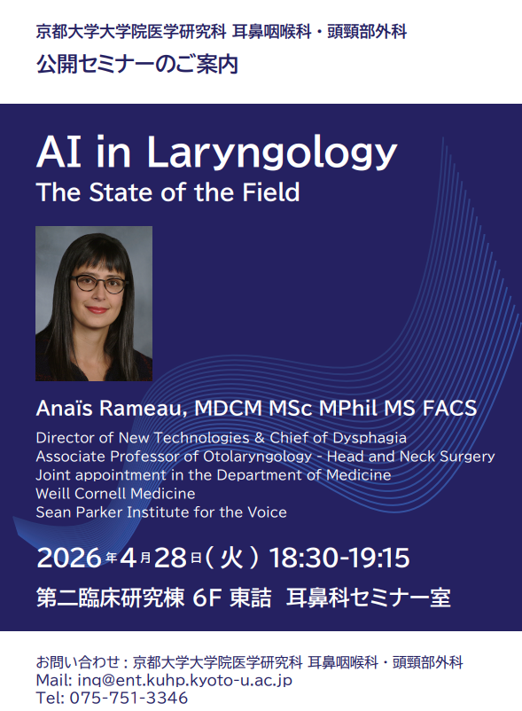 News 医療関係者の方へ2026-04-22京都大学大学院医学研究科 耳鼻咽喉科・頭頸部外科